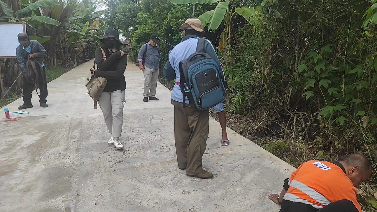 Tim Teknis Perkimtan Monitoring Pekerjaan Fisik Jalan Lingkungan di Gang SMP Desa Talio