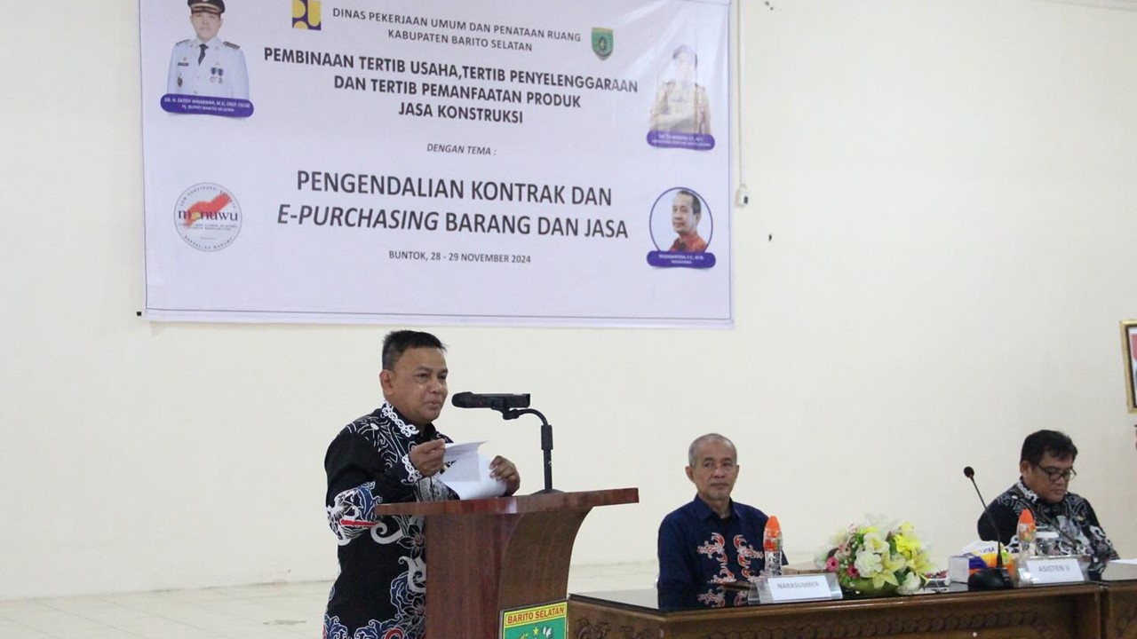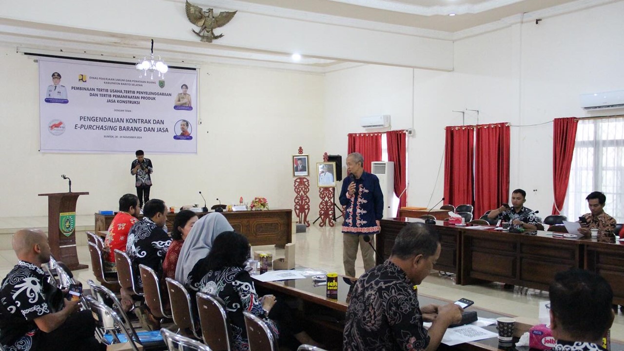 Buntok – Kamis (28/11/2024), Dinas Perkimtan mengikuti kegiatan Pembinaan Tertib Usaha, Tertib Penyelenggaraan, dan Tertib Pemanfaatan Produk Jasa Konstruksi yang mengusung tema “Pengendalian Kontrak dan E-Purchasing Barang dan Jasa”. Acara ini berlangsung di Aula Kantor Badan Perencanaan Pembangunan Daerah (Bappeda) dengan dihadiri berbagai pemangku kepentingan.