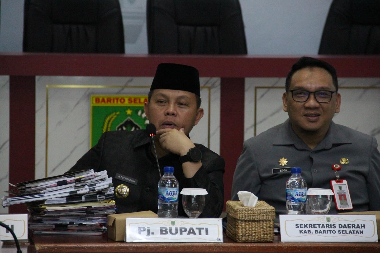 Dalam rapat yang dipimpin langsung oleh Pj. Bupati Barito Selatan, berbagai agenda strategis dibahas, termasuk evaluasi program prioritas yang sedang berjalan dan rencana kerja di bulan mendatang. Kepala Dinas Perkimtan turut menyampaikan laporan terkini terkait perkembangan proyek di sektor perumahan, kawasan permukiman, dan pengelolaan pertanahan, serta menekankan pentingnya sinergi antarinstansi untuk mempercepat realisasi target pembangunan.