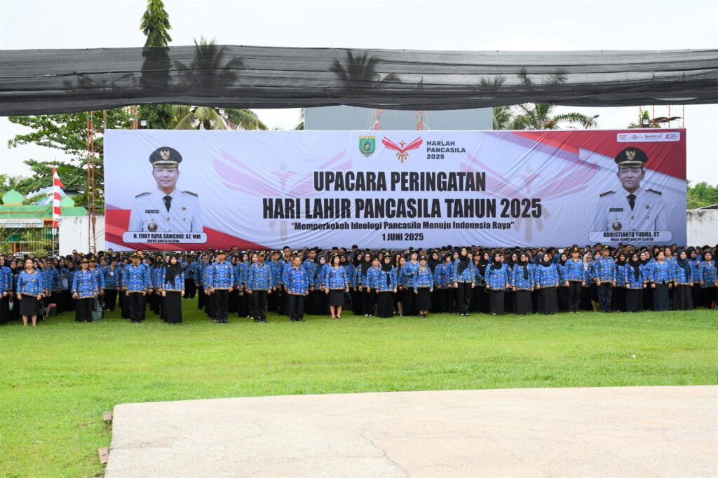Buntok, 2 Juni 2025 – Pemerintah Kabupaten Barito Selatan (Pemkab Barsel) memperingati Hari Lahir Pancasila dengan menggelar upacara bendera di halaman Kantor Bupati Barsel. Wakil Bupati Barsel, Khristianto Yudha, bertindak sebagai inspektur upacara pada peringatan tahun 2025 ini. Acara tersebut dihadiri oleh Forum Koordinasi Pimpinan Daerah (Forkopimda), Plh Sekretaris Daerah Kabupaten Barsel, Kepala Perangkat Daerah, serta seluruh unsur Aparatur Sipil Negara (ASN), Tentara Nasional Indonesia (TNI), dan Kepolisian Republik Indonesia (Polri).
