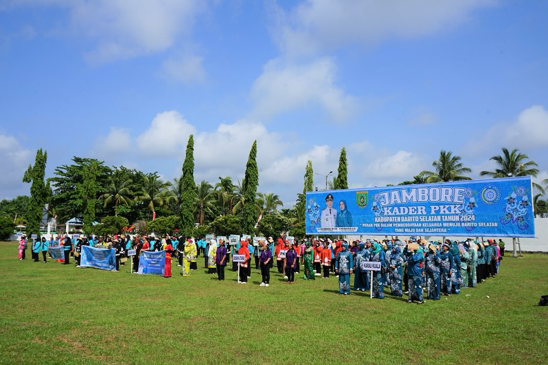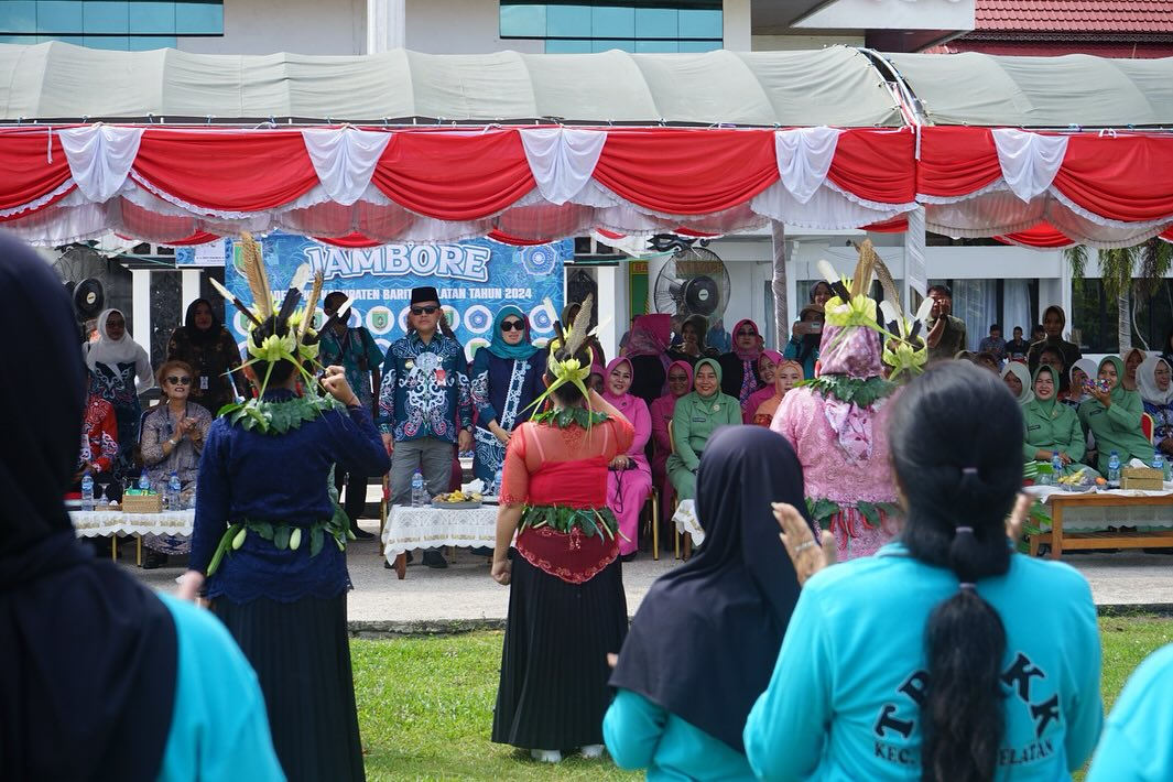 ”Jambore kader PKK Tingkat kabupaten ini salah satu bentuk upaya TP PKK Kab Barsel dalam membina dan menjalin kerjasama serta peningkatan pengetahuan para kader menuju kader yang berkualitas.”tutup Pj Bupati.