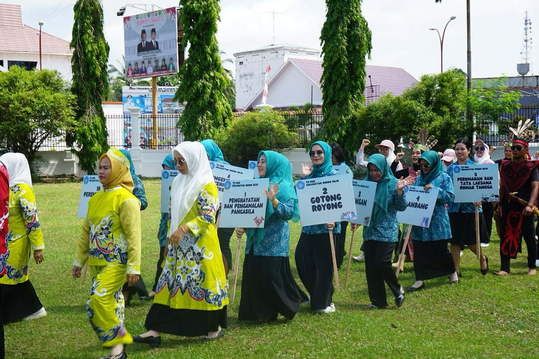 Buntok – Jambore PKK tahun 2024 diisi lomba defile yang diikuti oleh 6 kecamatan se Kabupaten Barito Selatan bertempat di halaman kantor Bupati Barito Selatan Buntok, Kamis (24/10/2024). Acara yang dibuka secara resmi oleh Penjabat (Pj) Bupati Barito Selatan H. Deddy Winarwan dihadiri oleh Ketua TP PKK Kabupaten Barito Selatan Hj. Erna Ardiani Palupi.